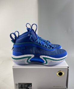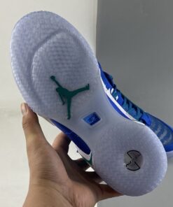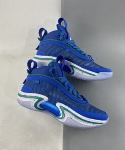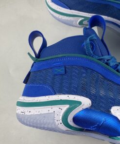 This Luka-inspired PE colorway of the Air Jordan 36 comes dressed in the Dallas Mavericks color blocking of Blue, White, and Green. Highlighting the shoe is a new Luka “LD77” logo on the left tongue. Other details includes a speckled midsole atop an icy translucent outsole.