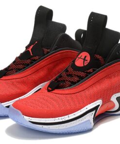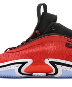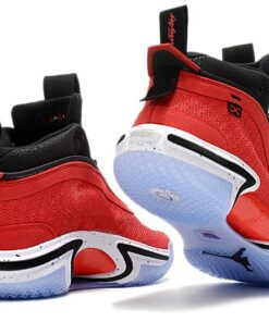 Going over Rui’s Air Jordan 36, it comes dressed in a Red, Black, and White color combination, which is for his team colors. On the left tongue, we have Hachimura’s ‘H’ logo, and the right has a Jumpman. Other highlights include a speckled midsole and a translucent outsole.