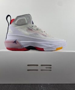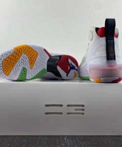 This offering of the Air Jordan XXXVII borrows elements from the “Hare” Air Jordan 7 seen on the tongues and outsole. The shoe comes constructed with lightweight and translucent leno-weave material that’s reinforced with an exoskeleton on the sides for added support. The midsole includes a double-stacked Zoom bag at the forefoot with a carbon fiber plate at the midfoot, and soft Formula 23 foam at the heel.