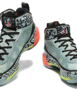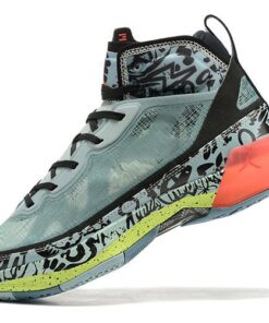 Dressed in an Ocean Cube, Flash Crimson, Volt, Black, and Celestial Teal color scheme. This offering of the Air Jordan XXXVII features personalized details on the tongue, collar, and midsole. It also comes with custom printed insoles housed in special packaging.