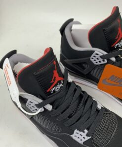This Air Jordan 4 comes dressed in the original color theme which consists of Black, Cement Grey and Fire Red. In addition this remastered edition which have Nike Air branding on the heel.