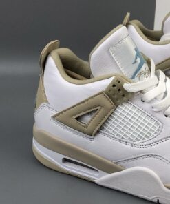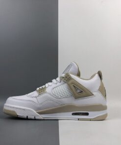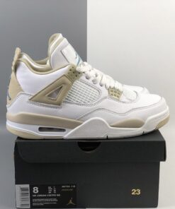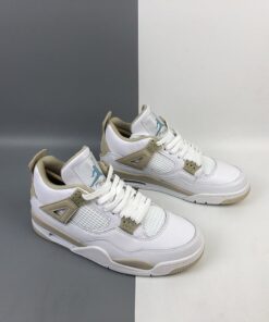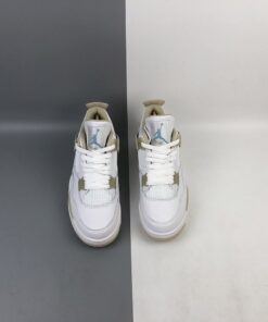 Dressed in a dull-looking White, Boarder Blue, and Light Sand color scheme. This Air Jordan 4 features a White tumbled leather upper with Light Sand and Blue contrasting accents throughout. You can bet that a lot of guys will be trying to squeeze their feet into women’s sizes when these launch.