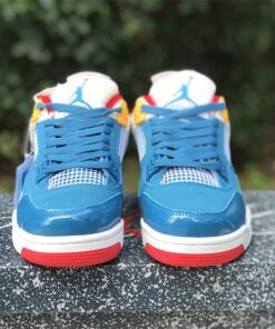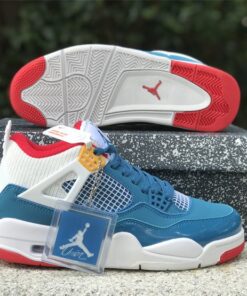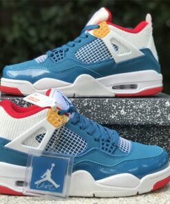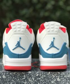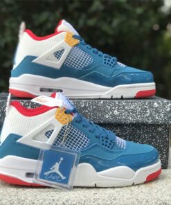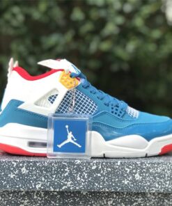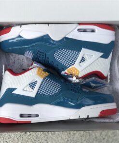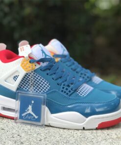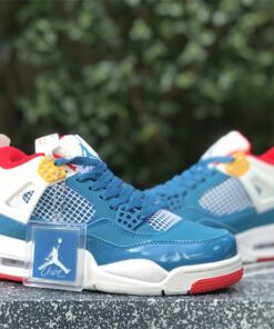 This Air Jordan 4 comes dressed in a French Blue, White, Gym Red, Pearl White, Chutney, and Altitude Green color combination. Utilizing various materials with Blue and White on the base. Next, Red appears on the liner, and Yellow adorns the eyelets on the wings. Blue fills in the Jumpman logos, and a splash of colors is used on the label inside of the tongue. Other details include White netting on the panels, rubber soles with Red accents, and each comes with an extra set of laces.