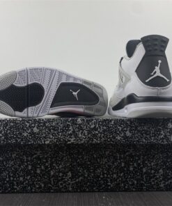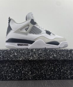 This offering of the Air Jordan 4 will come in a similar color blocking as the “Military Blue” release, but all the Blue details will be replaced with Black. The rest of the shoe features a White leather base with Neutral Grey overlays. All three colors, White, Black, and Grey, will appear on the rubber outsole.