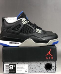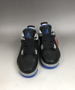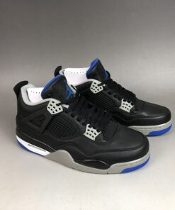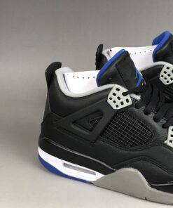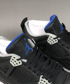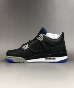 Dressed in a Black, Game Royal and Matte Silver color scheme. This Air Jordan 4 features a Black leather upper with Royal Blue accents on the tongue, insoles and outsole as a nod to the gear worn by Michael Jordan’s Motorsports team.