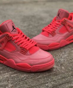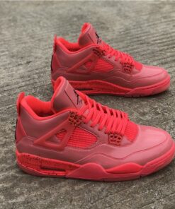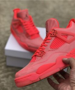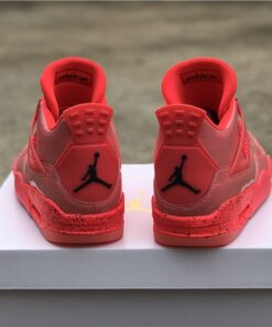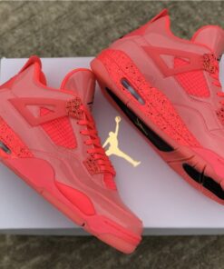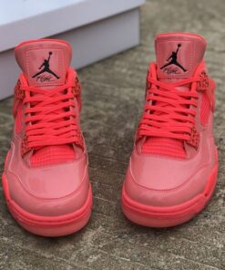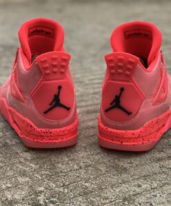 Dressed in a Hot Punch, Black, and Volt color scheme. This Air Jordan 4 features a Pink patent leather upper contrasting with Black detailing throughout. Volt hints atop a speckled midsole and translucent outsole completes the design.