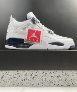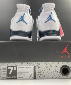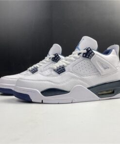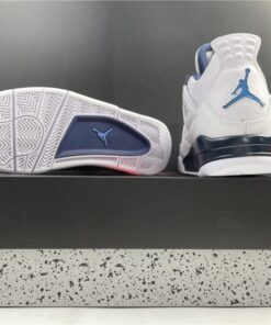 This Air Jordan 4 remastered edition of the “Columbia” now being dubbed, “Legend Blue” features a full tumbled leather upper with perforations in place of the mesh netting as well as Midnight Navy Blue accents and Legend Blue Jumpman logos on the tongue, insoles, and back heel.