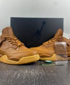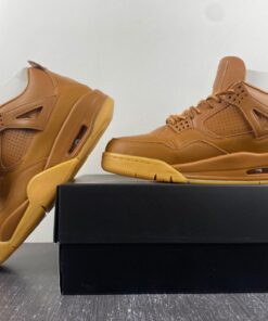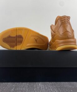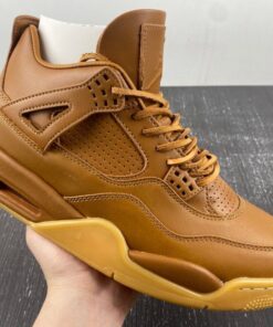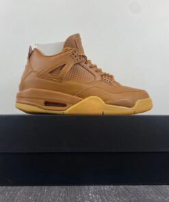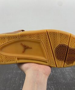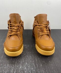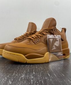 Dressed in a Ginger and Gum Yellow color scheme. This Air Jordan 4 also known as the Air Jordan 4 “Wheat” colorway references the iconic Timberland work boot. Built with a premium leather upper and laces that includes His Airness’ timeless Jumpman logo on the tongue, heel and outsole. The shoe is completed with a quilted insole for that premium feel.