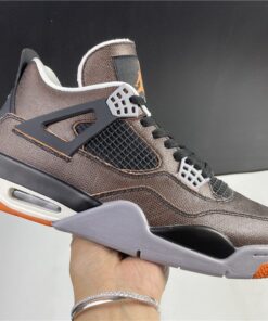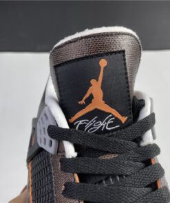 Dressed in a Sail, Black, Starfish, and Light Smoke Grey color scheme. This Air Jordan 4 features a ballistic mesh build with an Orange layer underneath. White inner lining and midsole atop a Grey, Orange, and White rubber outsole completes the design.