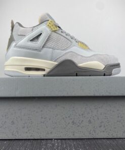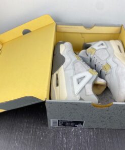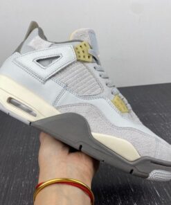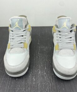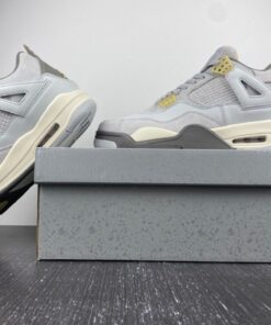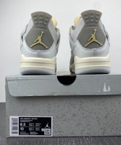 Dressed in a Photon Dust, Pale Vanilla, Off White, Grey Fog, Flat Pewter, and Sail color scheme. This offering of the Air Jordan 4 features a split upper constructed in a mix leather, suede, and textiles. Pale Vanilla accents atop a Sail midsole and Flat Pewter outsole completes the design. The shoe will be available in men’s and GS sizing and will be housed in new packaging.