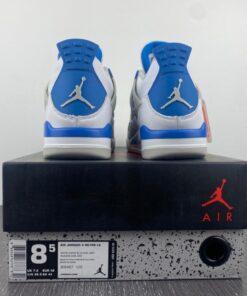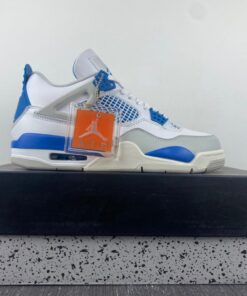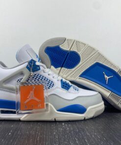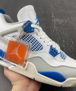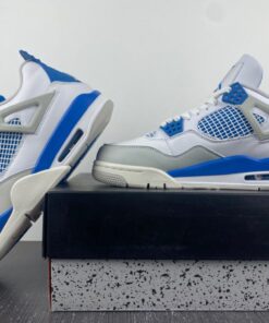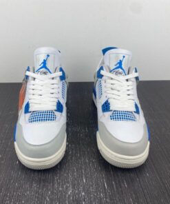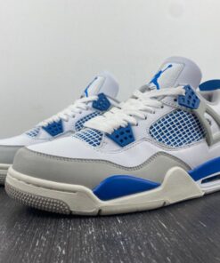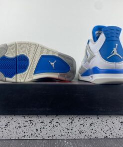 The Air Jordan 4 “Military Blue” feature a White base with hints of Neutral Grey and Military Blue throughout.