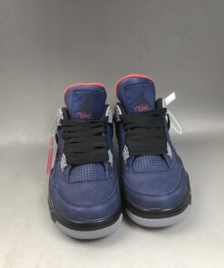 Dressed in a Loyal Blue, White, Habanero Red, and Black color scheme. This Air Jordan 4 has vibes that reminds you of Eminem’s “Encore” Air Jordan 4 with its Blue-based upper and Red contrasting accents. For the colder months, the model’s usual mesh underlays has been replaced with a canvas-like material that extends onto the tongue. A fleece-like material is also used on the liner to keep your feet warm.