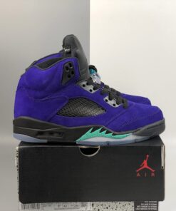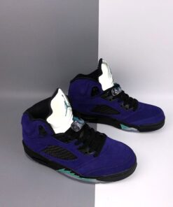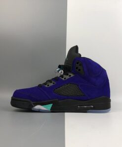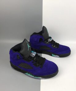 It comes in mix of Grape Ice, Black, Clear, and New Emerald. No leaked photos have surfaced, but this Air Jordan 5 is expected to feature a Purple suede upper with Black and New Emerald accents atop an icy outsole. No word on if the release will include “Nike Air” heel tabs.