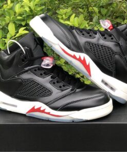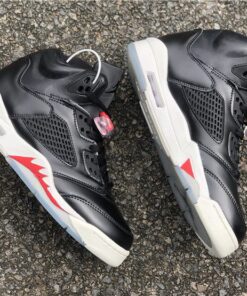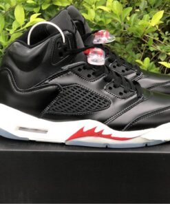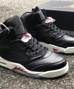 One of the newer pairs scheduled to launch comes dressed in a Black, Muslin, and Fire Red color scheme resembling the “Couture” Air Jordan 1 that released back in February 2019. No leaked photos have surfaced, but this Air Jordan 5 is expected to feature a Black upper paired with Fire Red accents atop a Cream-colored midsole and icy translucent outsole.