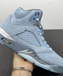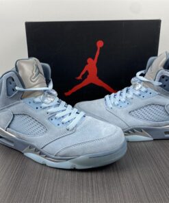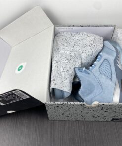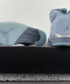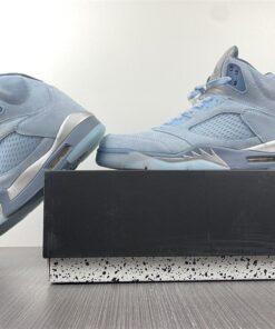 Dressed in a Photo Blue, Football Grey, Metallic Silver, and White color scheme. This women’s exclusive Air Jordan 5 takes inspiration from Bluebird days. The shoe is highlighted by various shades of Blue combined with soft nubuck and clear TPU eye stays. An iced-out translucent outsole completes the design.