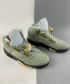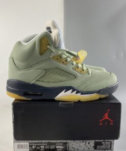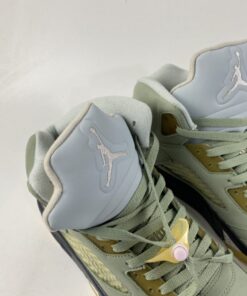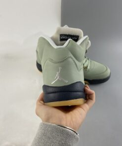 Dressed in a Jade Horizon, Light Silver, Anthracite, and Pink Glaze color scheme. This Air Jordan 5 features a premium leather upper that develops a beautiful patina over time, while also having vintage oxidized outsoles, eyelets and lace toggles. Complemented by an OG reflective tongue with Desert Sand accents on the midsole and sock liner, the model releases in men’s and grade school sizing.