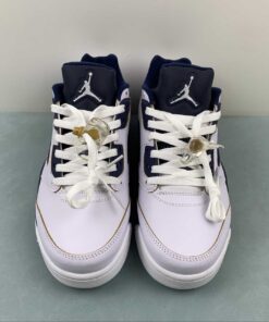 Dressed in a Black, White, Lilac Ice, and Pink Rise color scheme. This offering of the Air Jordan 5 Low features a Black nubuck upper with 3M reflective tongues and Pink appearing on the speckled shark teeth overlay along the midsole. Dongdan tournament’s logo on the heels atop a translucent outsole with a Jumpman sky graphic insole completes the design.