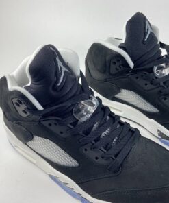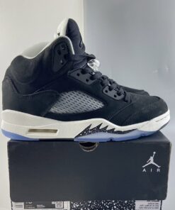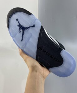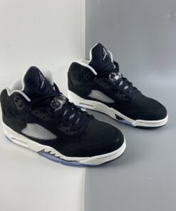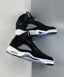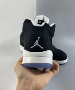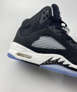 Dressed in a Black, White, and Cool Grey color scheme. This Air Jordan 5 will look like the original pair featuring a Black nubuck upper, Grey Jumpman tongues, translucent netting on the sides and White embroidered branding on the heels. A White midsole with speckled Oreo shark teeth atop an icy translucent outsole completes the design.nslucent rubber outsole which finishes the look.