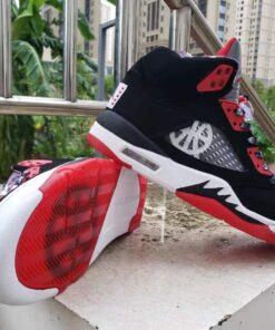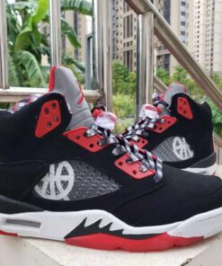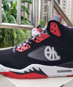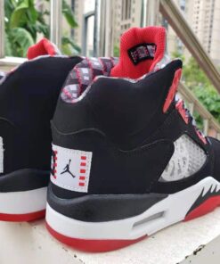 This “Friends and Family” offering of the Air Jordan 5 features an alternate Black suede base with the same details and designs inspired by traditional West African fabric patterns as the retail pair. A White midsole with Black shark teeth atop a Red translucent outsole completes the design.