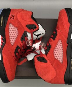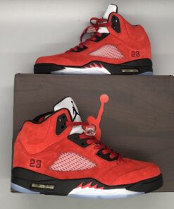 For 2021 this classic Air Jordan 5 comes dressed in a Varsity Red, Black and White color combination. Constructed with a Red suede across the upper, 23 lands by the heel and translucent mesh hits the panels and tongue. Following we have Black detailing, a bit of White on the teeth located on the tongue with hints of Red, 3M Reflective tongue and a translucent rubber outsole which finishes the look.