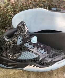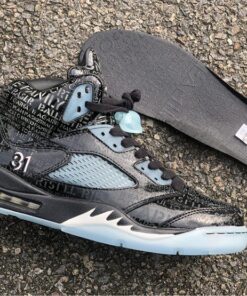 – Isaac’s jersey numbers, 9 for baseball on the upper of the left shoe and 31 for basketball on the right.