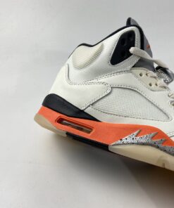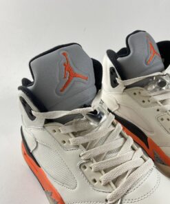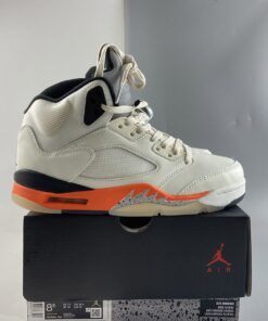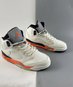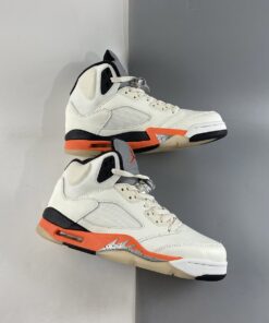 Dressed in a Sail, Orange Blaze, Metallic Silver, and Black color scheme resembling the popular “Shattered Backboard” releases. This Air Jordan 5 features a Sail leather upper while the shoe’s collar, quarter panel and tongue bottom are layered with textile mesh. Other details includes Silver reflective tongues and shark-teeth along the midsole, Black detailing throughout, with an Orange Jumpman tongue logo and matching midsole atop a translucent outsole completes the design.