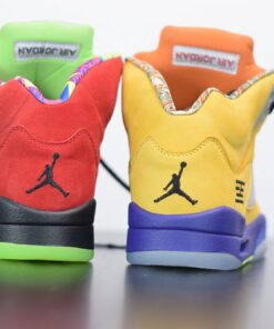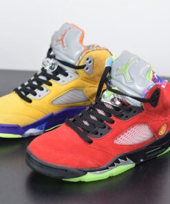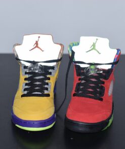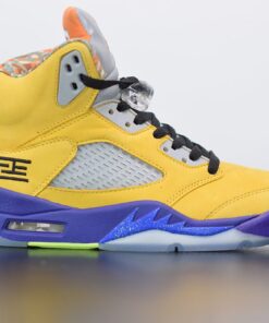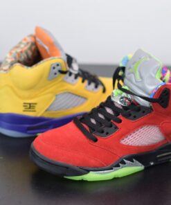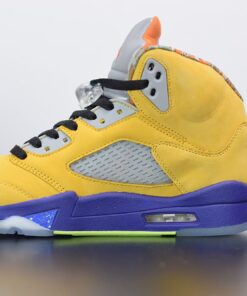 The shoe features a mismatched Yellow and Red color blocking. Each heel comes with a Japanese character and medallion embroidery from the “Tokyo 23” and “Shanghai” colorways, respectively. Other details includes graphic lining from the “Bel-Air” and “Laser” Jordan 5s with 3M reflective tongues and translucent netting on the sides.