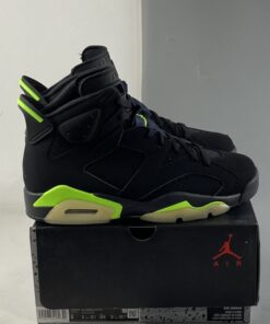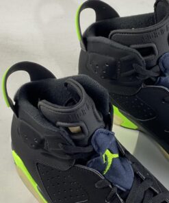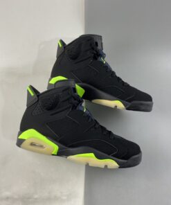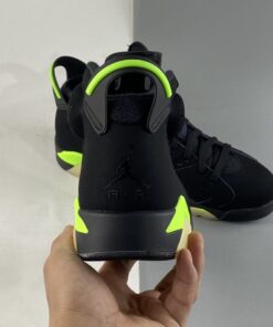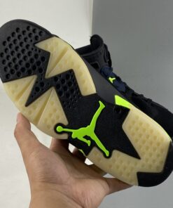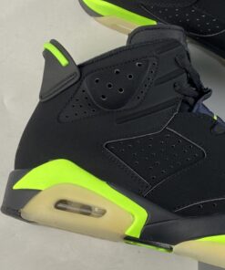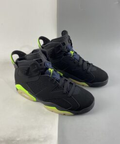 Dressed in a Black and Electric Green color scheme. This Air Jordan 6 will look similar to the “Oregon Ducks” Air Jordan 6 with no Oregon branding. It features a Black upper with Electric Green accents on the branding, heel and midsole replacing the Green outsole for milky glow-in-the-dark translucent finish.