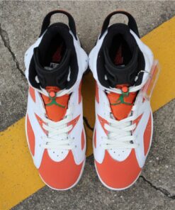 The Gatorade edition of the Air Jordan 6 comes dressed in a Summit White, Black and Team Orange color combination. The look resembles that of the ‘Carmine’ which was originally worn by Michael Jordan in the Be Like Mike Commercial. Using White leather on the overlays, we have Orange used on the base along with Green accents. Other highlights include the lace locks which resembles the Gatorade squeeze bottle, branded insoles and on the inside of the tongue reads “If I Could Be”.
