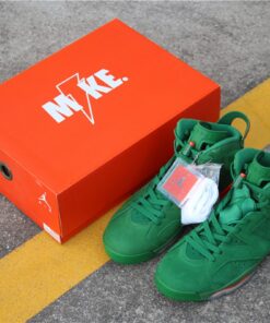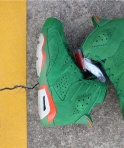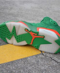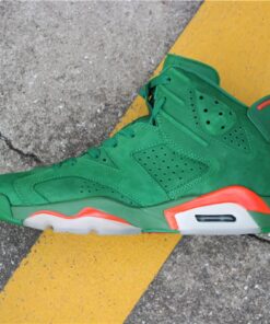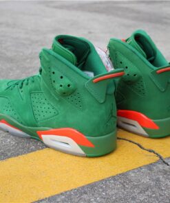The Gatorade edition of the Air Jordan 6 comes dressed in a Green, Team Orange and Summit White color scheme which represents the brands logo. Across the uppers is predominate Green which is constructed of nubuck. Following will be the use of Orange which is seen on the heel tab, Jumpman on the lace lock. Finishing the look is a mixture of White and icy translucent sections on the outsole.