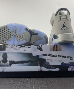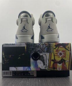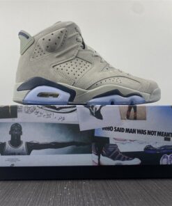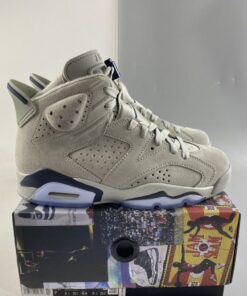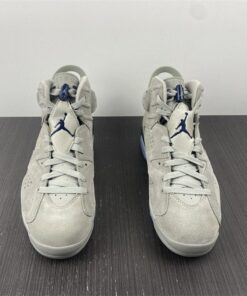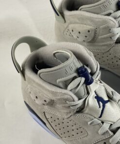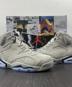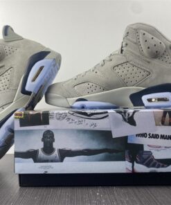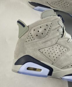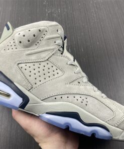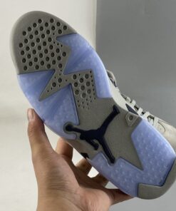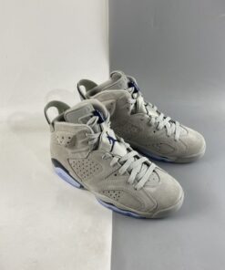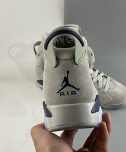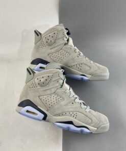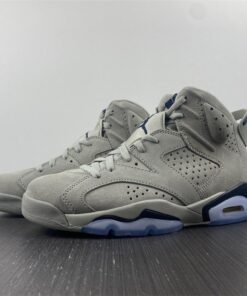 Dressed in a Magnet and College Navy color scheme. This offering of the Air Jordan 6 features a Grey suede base with matching tongues, laces, heel clips, and midsole. Navy detailing covers the accents at the midsole, heel clip, and Jumpman branding atop an icy translucent outsole.