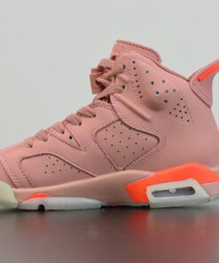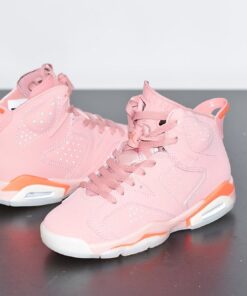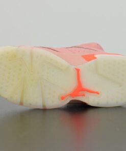 this Air Jordan 6 features Pink across the uppers which extends across the heel, tongue and laces. Following we have Infrared accents on part of the midsole and Jumpman branding. Finishing the look is a translucent outsole.
