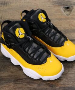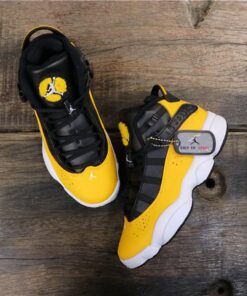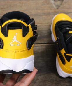 Dubbed the “Taxi,” the Air Jordan 6 Rings arrives dipped in a bright yellow and black upper, switching out the Jordan 11-inspired leather mudguard with top grain tumbled leather. The pair’s branding comes in a tongue patch, embossed Air Jordan wording on the strap and Jumpman logos on the toe cap, lace binder, sole and stretched heel notch.