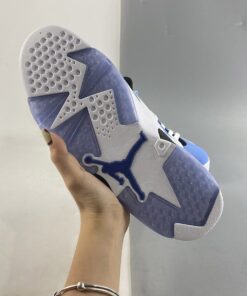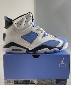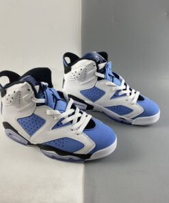 This Air Jordan 6 will come dressed in the classic UNC colorway. Although images have yet to leak, we can confirm that the mock-up is an accurate representation of what’s releasing. Highlighted in a ‘Carmine’ color blocking, University Blue lands on the base while White leather appears on the overlays. Next, Navy hits the lace lock, branding, liner, heel, and midsole. The woven jock tag is stitched onto the heel, argyle print lands on the translucent tongue, while an icy translucent outsole finishes the look.