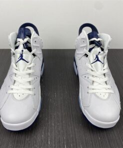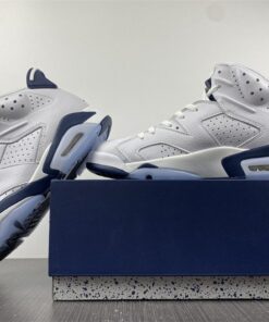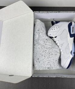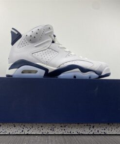 this Air Jordan 6 features the original White and Midnight Navy color combination. Utilizing White leather throughout along with the traditional perforations on the panels and ankle. Next, accents of Midnight Navy land on part of the midsole and branding. Other details include the Jumpman embroidered on the heel and a translucent outsole.