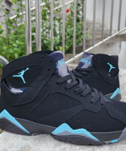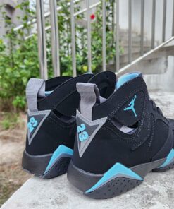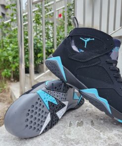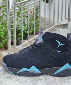Dressed in a Black, Chambray, and Light Graphite color scheme. This offering of the Air Jordan 7 will look like the original release featuring a Black suede upper with reflective paneling and Chambray contrasting accents throughout. Light Graphite on the tongues and midsoles completes the design.