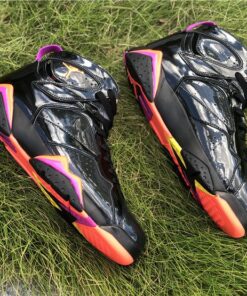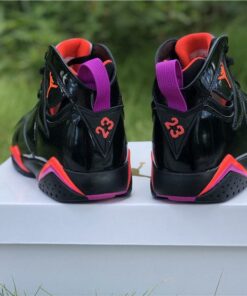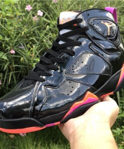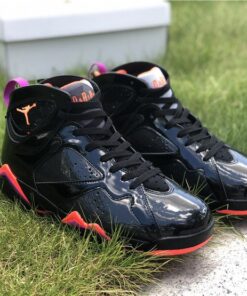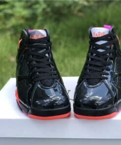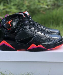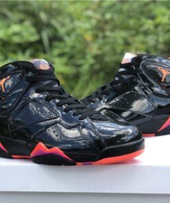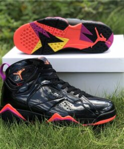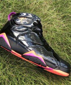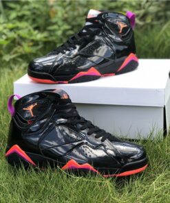 Dressed in a Black, Anthracite, Smoke Grey, and Bright Crimson color scheme. This offering features a Black patent leather upper highlighted with Vivid Orange and Purple accents on the midsole and branding spotted on the tongue, collar, and heel. Signature tongue design with hits of Yellow spotted on the outsole completes the design.
