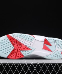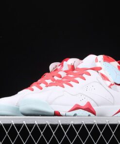 While the theme to this collection has yet to be confirmed, this release comes dressed in a White, Topaz Mist, Ember Glow, and Gym Red color scheme. Much like the other models, the shoe features a White leather upper paired with Light Blue and Red contrasting accents. A unique pattern design is used along the ankle collars completed with a set of Red or Light Blue laces.