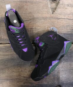 Dressed in a Black, Fierce Purple, and Dark Steel Grey color scheme. Unlike his original player exclusive, this pair will combine both Allen’s PEs from his time in Milwaukee into one. It features a Black nubuck upper instead of leather, representing the “Bucks Away” pair with Purple and Grey on the midsole, and Purple Jumpman logo on the ankle atop a Green outsole like the “Bucks Home” version.