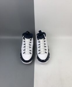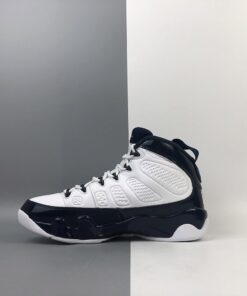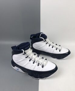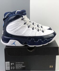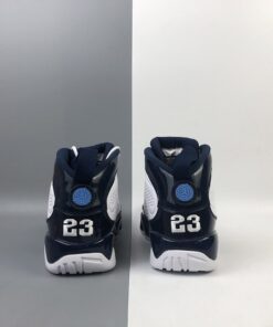 Dressed in a UNC color scheme of White, University Blue, and Midnight Navy. This Air Jordan 9 has a lot of similarities to 2002’s “Pearl Blue” Air Jordan 9 Low as well as the high sample.