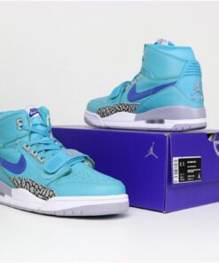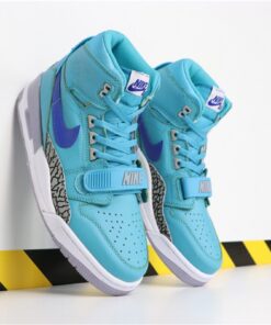 Dressed in a Hyper Jade and Bright Blue color scheme. This Jordan Legacy 312 features a Jade leader upper with Blue accents on the tongue and Swoosh logos. Signature elephant print overlays atop a White midsole and Grey rubber outsole completes the design.