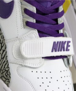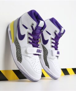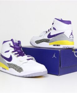Featuring a White, Field Purple and Amarillo color combination. As you can see this Don C x Jordan Legacy 312 comes highlighted with White leather across the upper while accents of Purple and Yellow give it the Los Angeles Lakers theme. Following we have Grey suede around the heel while elephant print completes the look.