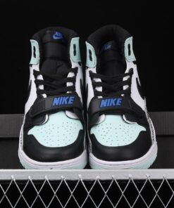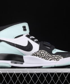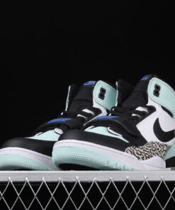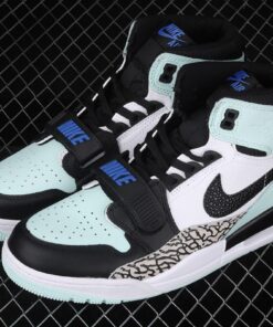 This offering features a White leather upper with Black leather overlays and a pebbled Swoosh logos on the sides. Iconic elephant print on the mudguard, Light Aqua on the upper ankle, toe, heel and outsole completed with Royal Blue accents on the tongue and strap.