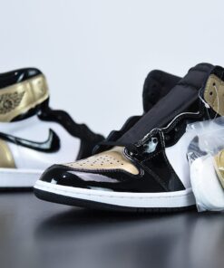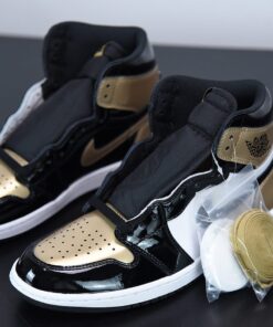 The Air Jordan Retro 1 High OG NRG “Gold Toe” is a highly coveted sneaker featuring a black, white, and gold colorway. With premium leather construction and the iconic Jordan logo, these sneakers are a must-have for any sneakerhead. Don’t miss your chance to add these limited edition kicks to your collection.