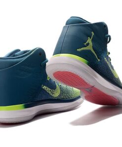 This Air Jordan XXX1 pays tribute to the country that the Olympics is being held at, Brazil. Dressed in the traditional Rio colors, the woven upper gets covered in a mixture of Green Abyss and Ghost Green. The shoe rests atop a White midsole and icy translucent outsole.