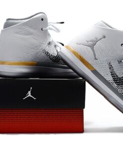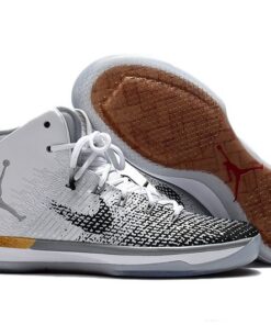 Dressed in a simple Black and White color scheme. This Air Jordan XXX1 includes special Chinese symbols on the inner tongue, and a woodgrain midsole on the back end. An icy translucent outsole with a Red Jumpman logo and more wood printing completes the design.