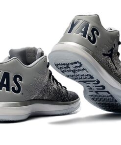 Dressed in a Wolf Grey, College Navy and White color scheme. This low-top Air Jordan XXX1 is highlighted with “Hoyas” on the heels and “Georgetown” on the outsole.