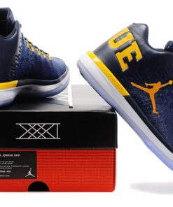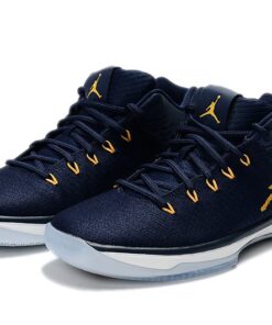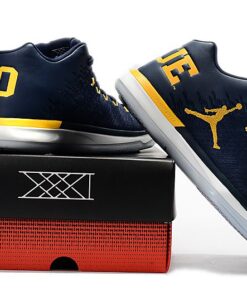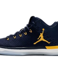 Dressed in a College Navy and Amarillo color scheme. This low-top Air Jordan XXX1 is highlighted with “GO” and “BLUE” on the heels, the block “M” logo on the insole, and Michigan on the outsole.