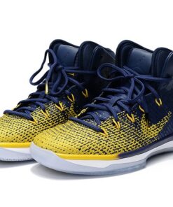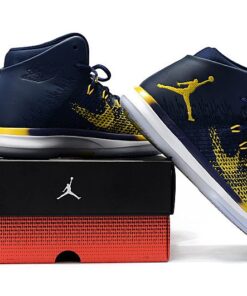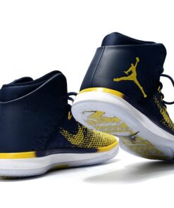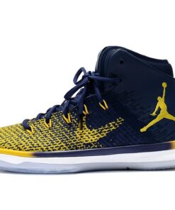 Dressed in the traditional Michigan colors of Blue and Maize. The Air Jordan XXX1 features a gradient pattern on its upper with a Yellow Jumpman, White midsole and Michigan text displayed on its translucent outsole.