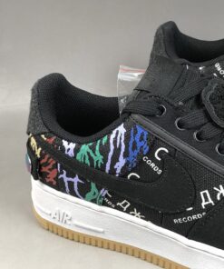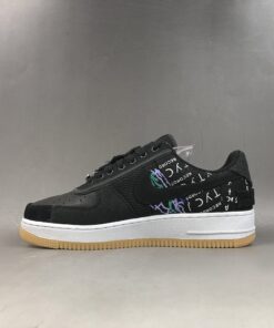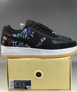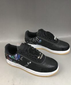 Courtesy of sneaker insider @ryivibes, we have a look at a black iteration of the shoe constructed of suede, canvas and leather panels marked with “Cactus Jack” printing and abstract patterns, this time done in an array of colors. The shoe also comes with matching canvas straps at the rear held down by gold-tone buttons but the corduroy/canvas sheath covering the tongue has been replaced by grill-inspired lace dubrae and interchangeable tongue patches. Rounding up the design of the alternate take is a white midsole paired with a gum rubber outsole.